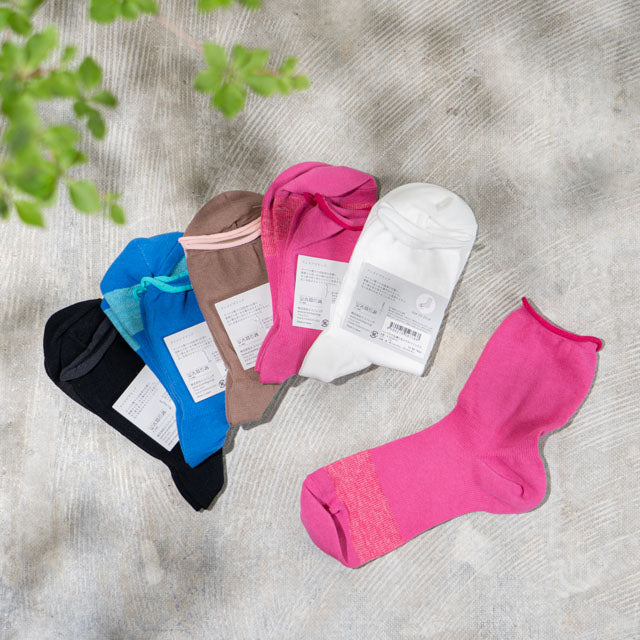 アシゴト パンプスでも滑らないクルーソックス マゼンダ